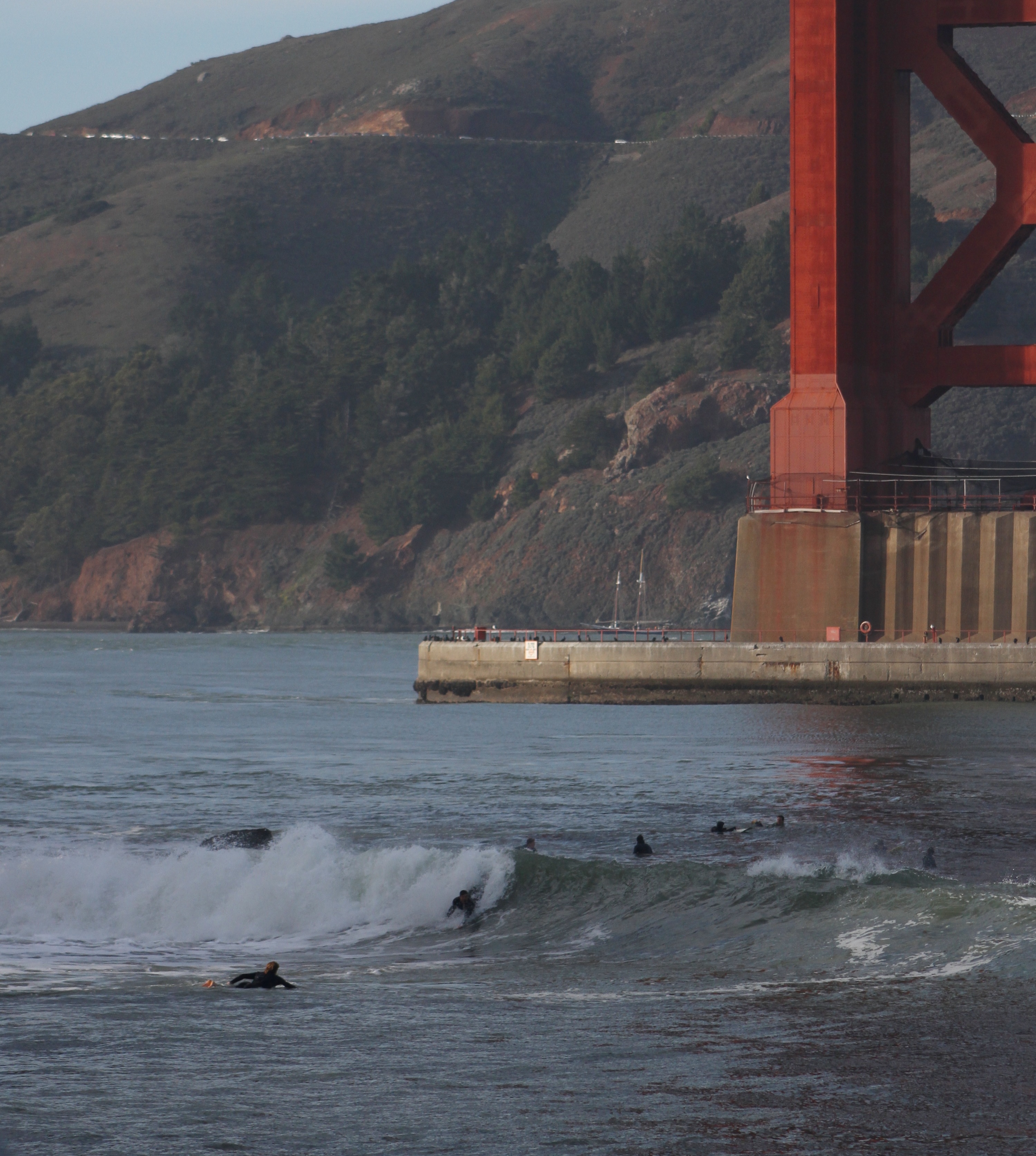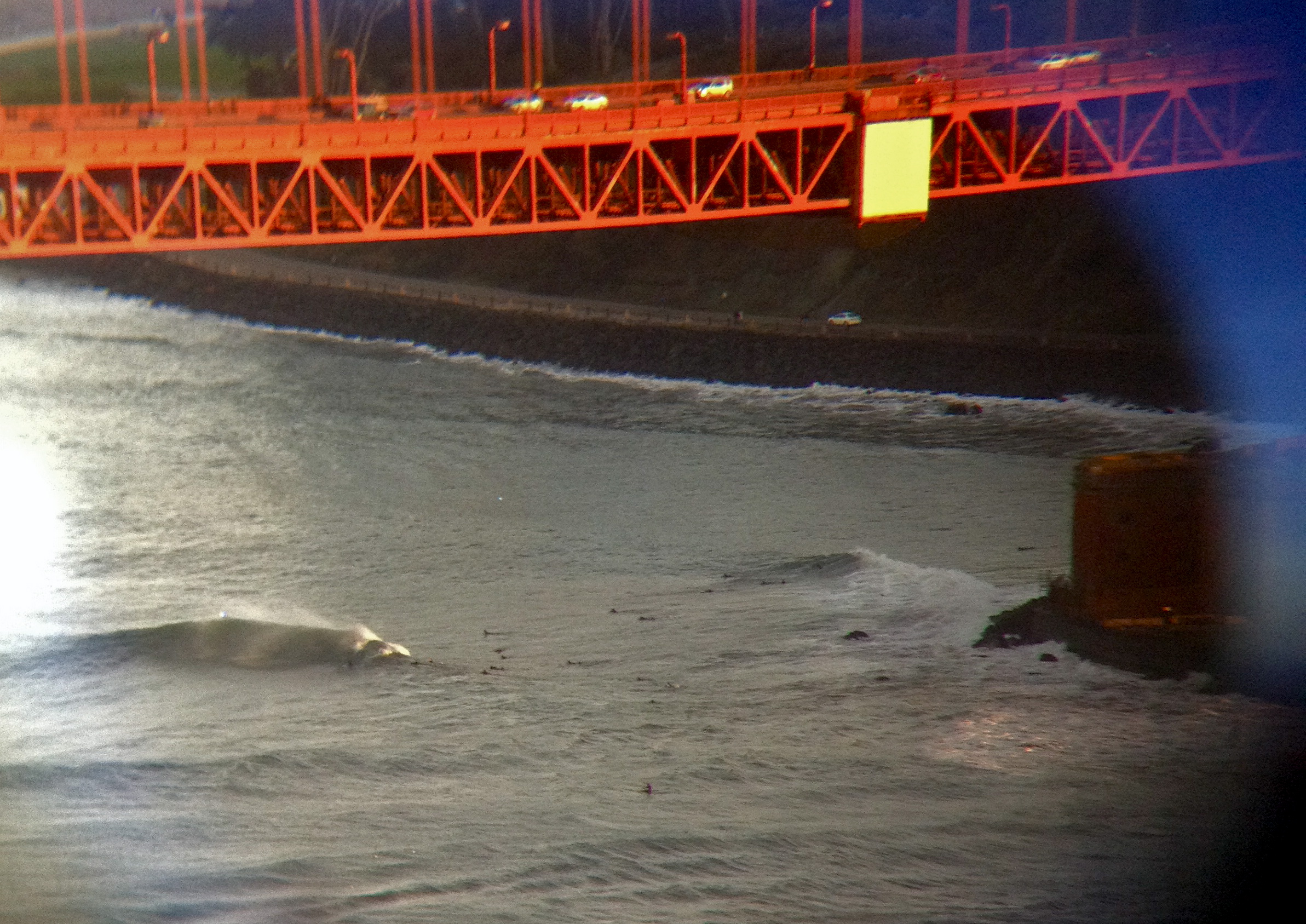 On to FP- too much tide- Crissy Park nap. Awake to dropping tide-rising swell. The Point woke up. Thought it was novelty, discovered a legitimate wave. Head high and incredibly dynamic. Sets swing swiftly into rocks. EJ charges. Once heard a big-wave icon say he can instantly decipher who truly has the proverbial “Right Stuff” by the way they react to an approaching set…EJ is the guy swimming into the guts of It because It “looks fun.”