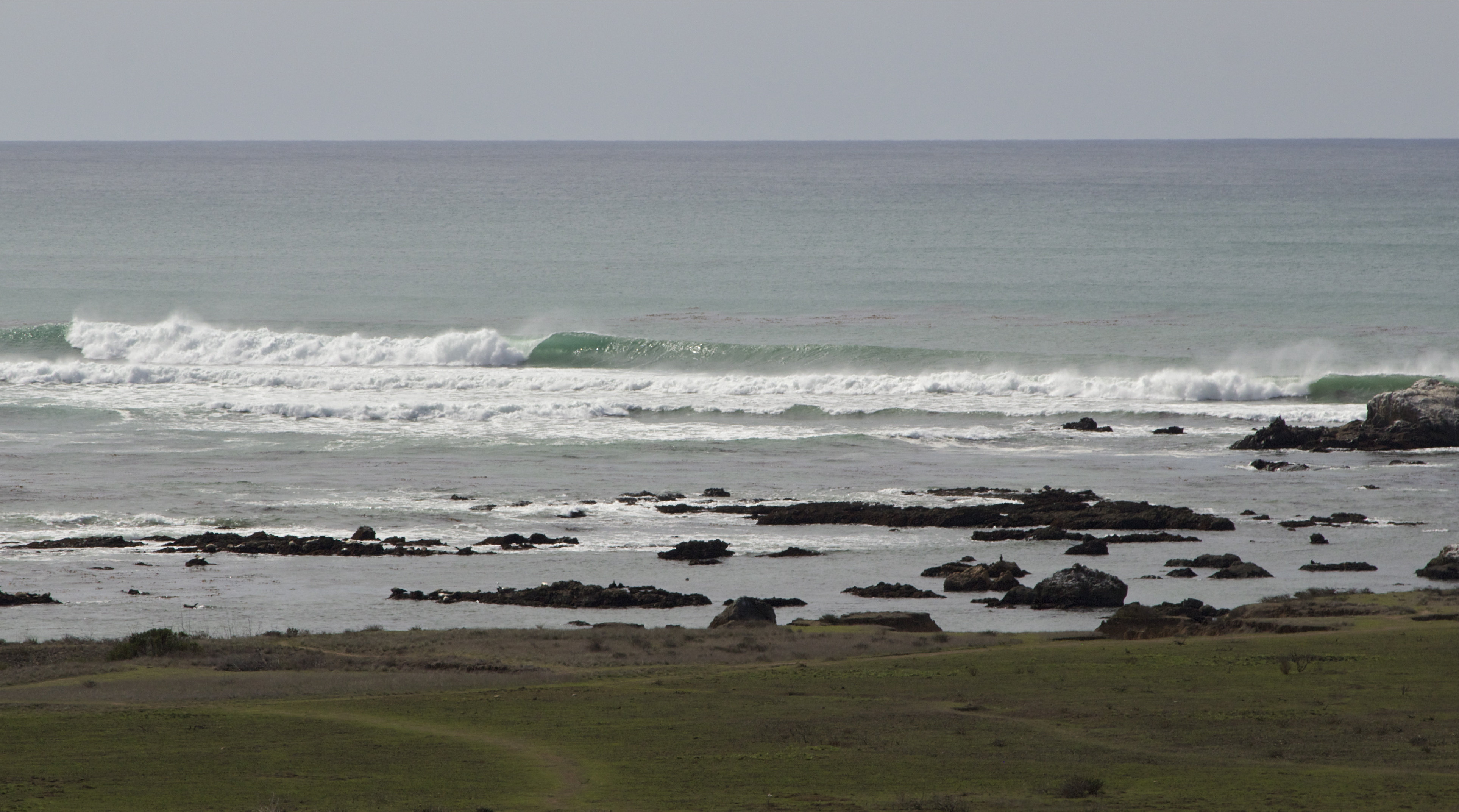 Southbound: Incredible wave potential everywhere. NW swell lingers. Every turn-out offers dynamic new potential. Epicness awaits the extra hearty. Somewhere: big lefts slab over an abrupt rocky reef…mindsurf. The giant elephant seals swimming on the inside have the best view.