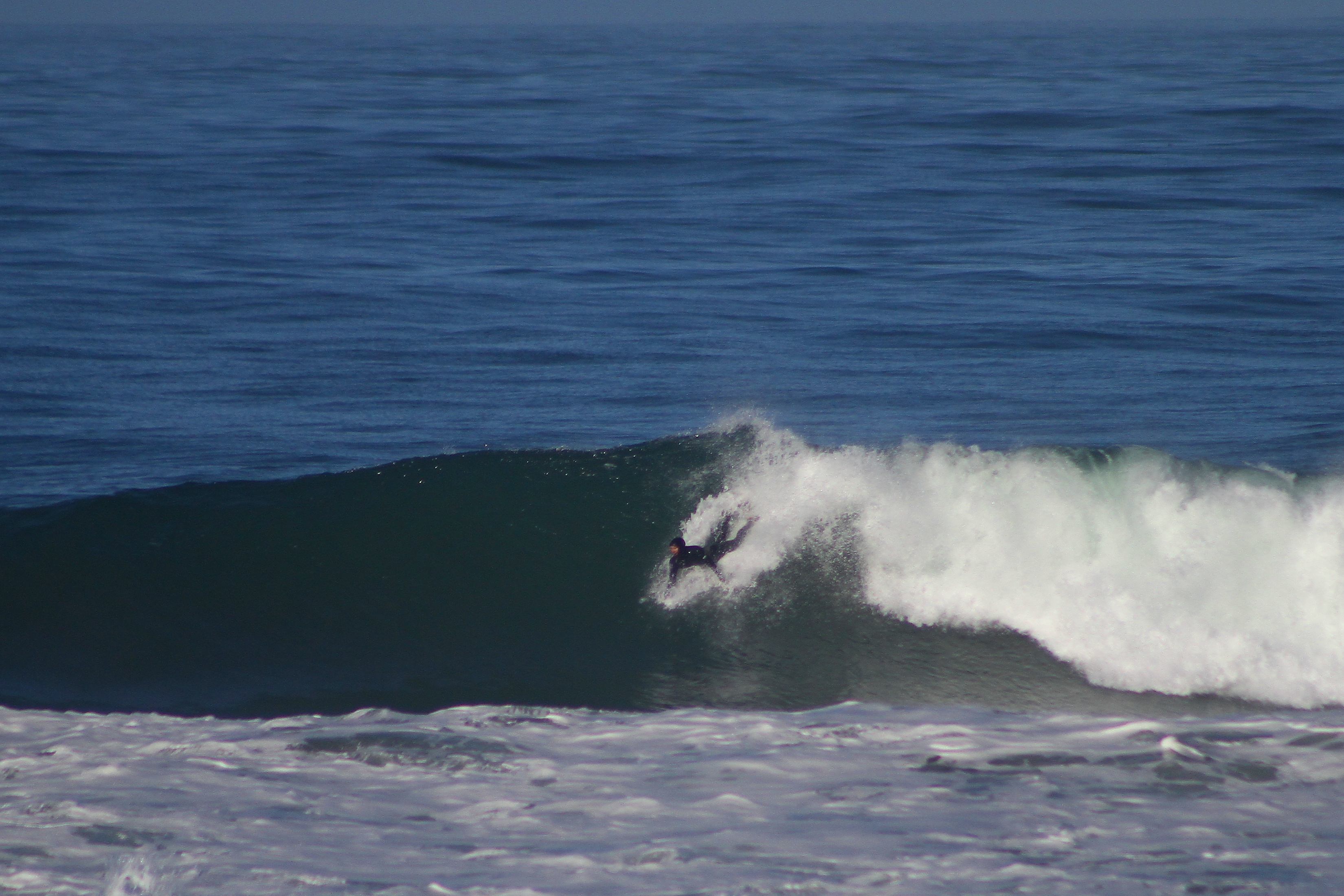 Urban camp Pacifica Pier…rocked to sleep by shorebreak energy. Next morning southbound, hike to the Boneyard and pay homage to Mavericks. On to Santa Cruz. A little nook is working on the Westside- waves bounce off the backside and wedge into fast hollow peaks…super fun. Watch The Point get torn apart by a heavy Westside crew including Flea and Nat Young.
