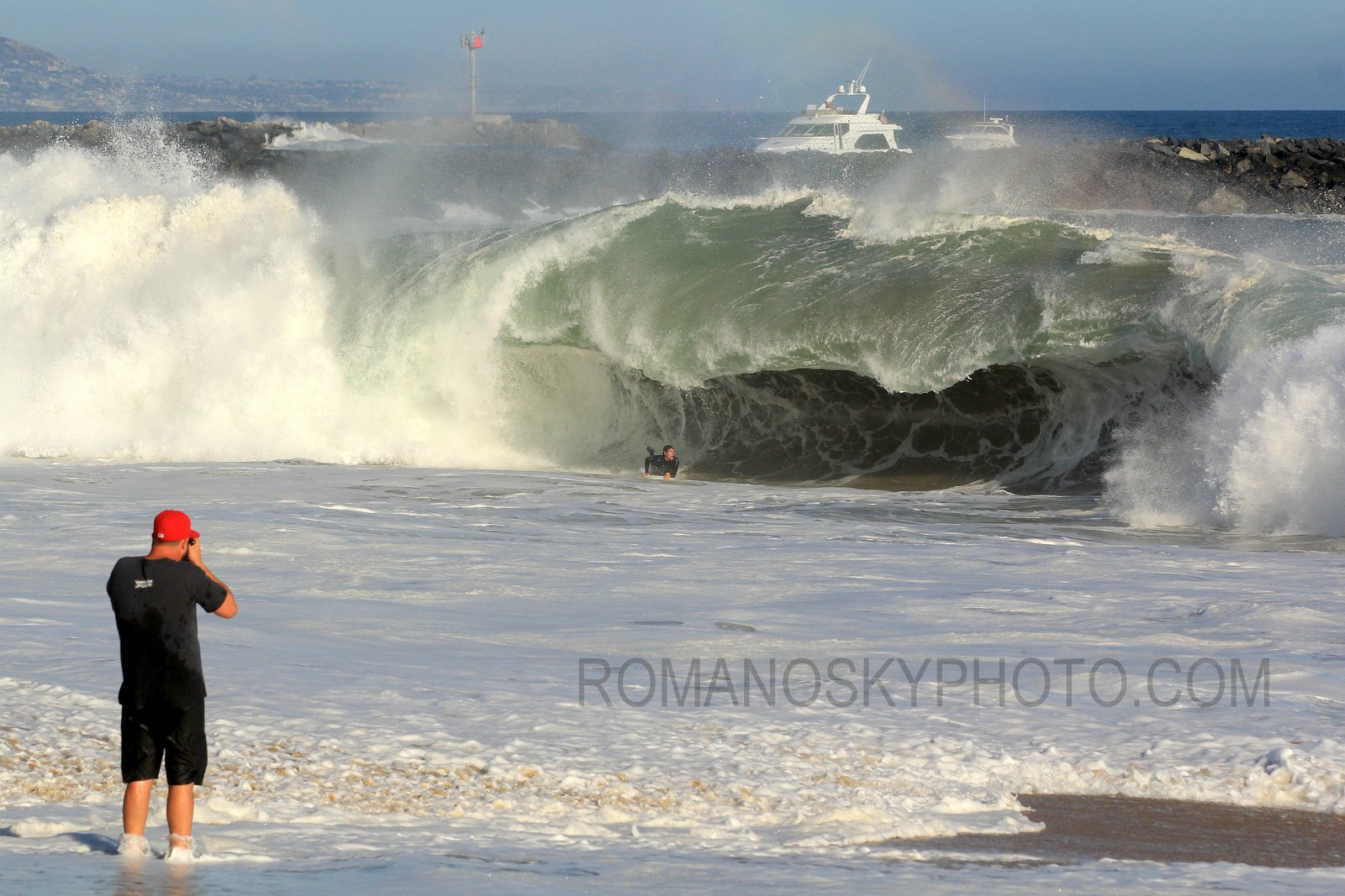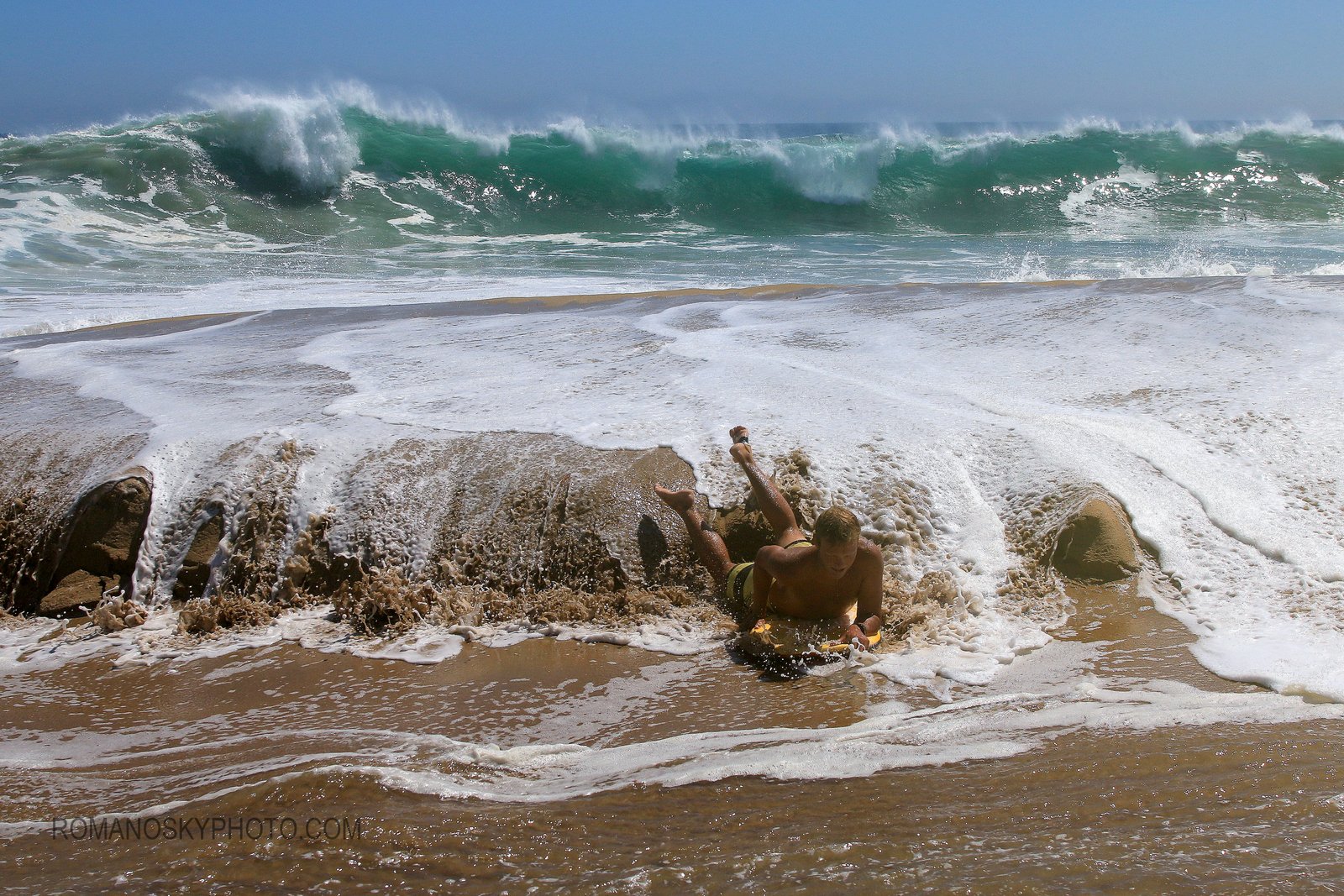 First called ‘The Hook’ Wedge (it’s ‘The Wedge’ to the TV and news media and the great masses directed there) has hooked riders and fans for decades. And since the advent of the internet (and consequently, due to it) this once bodysurfing-only spot during big south swells has become ground zero for riders of every persuasion and trend who would challenge it, test themselves and hope to “star”. Unfortunately, Wedge’s fame and notoriety have not escaped the usual commercial and promotional interests (specifically, skim and surfboard companies and many photographers) who covet the break for its earning potential. Wedge bodysurfing would likely become a memory if these interests had their way. Fortunately the Newport Beach City Council has not yet allowed Wedge to become California board surfing’s first whorehouse… nor, it is hoped by bodysurfers and Balboa Peninsula homeowners alike, will it ever.