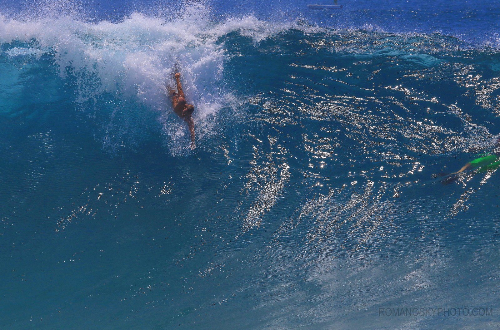 This set peak is reserved for the bodysurfer who has positioned himself in the right spot, as small and specific as it always seems to be on the big ones, and who possesses the rare abilities to catch and grace it with skills which are the end result of years of dedication and experience. And let us not forget the parts played by aptitude, passion, stamina and talent in the makeup of an outstanding bodysurfer. And the end result when such an individual glides across a good wave? Nothing other than the exhibition of an art form.