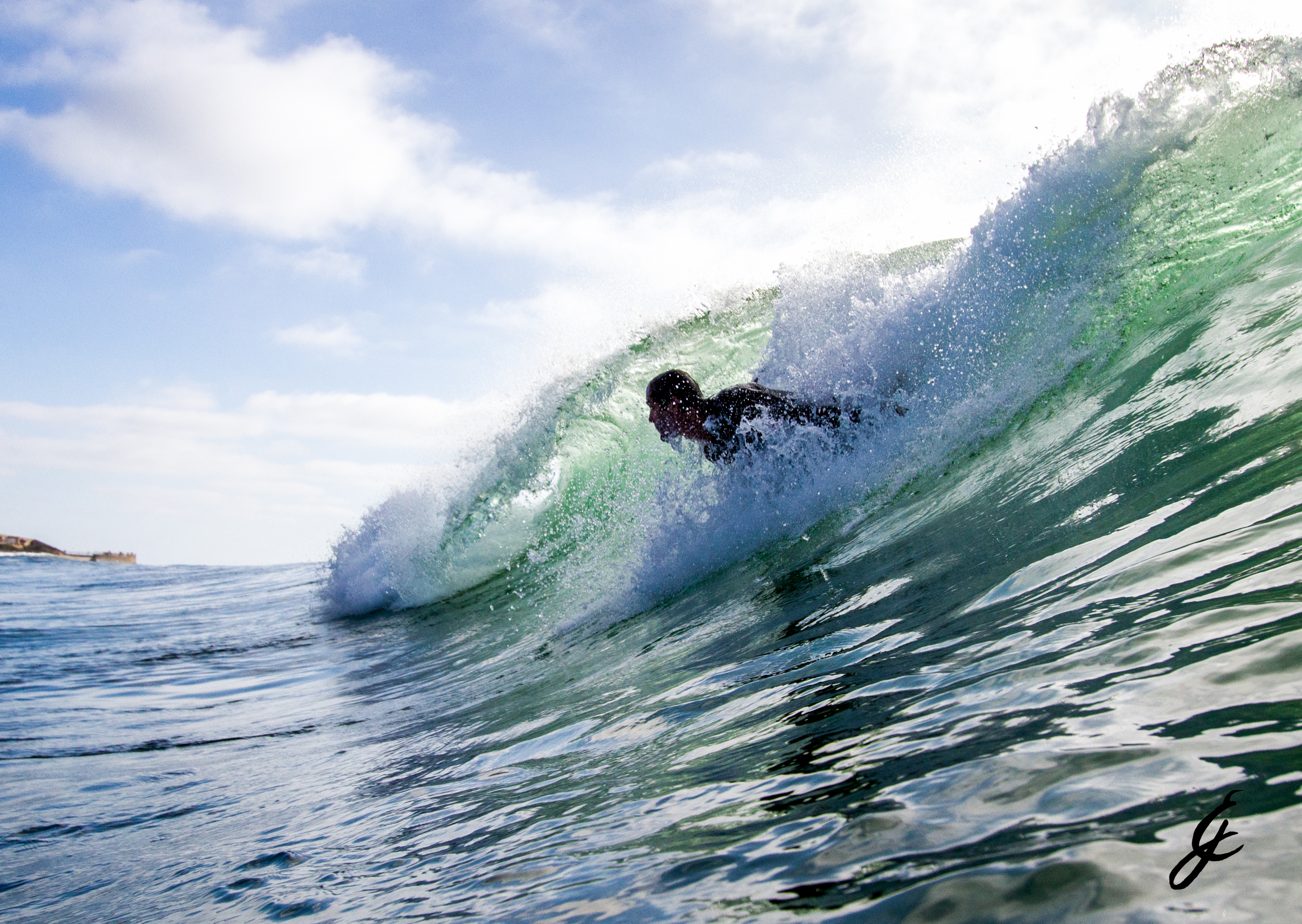 Robin began bodysurfing after a surfing injury. He waded into the shallows with old diving fins returning with one. Each time he swam back out he tried something new and each time his bodysurfing becoming more sophisticated. He moved from shorebreak into bigger and heavier breaks. Robin noticed that as the break became heavier the crowds became more respectful and so he found himself drawn to bodysurfing the heaviest spots he could get to. Eventually his horizons expanded beyond his local shores and he took to the sails. Scouring GoogleMaps he picked a point in Costa Rica that looked like it would have an amazing wave. After a few phone calls he found someone willing to trade an empty room for work. It was in this place chosen by providence and secured through Robin’s charm that he met his wife, another gift from the boundless Ocean.