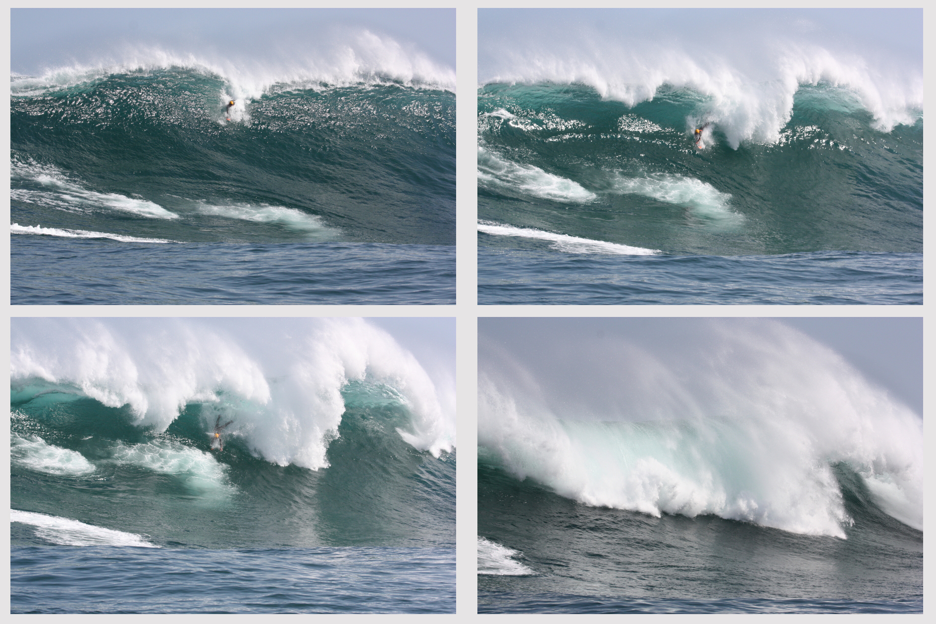 The word was out. Bodies lined the cliffs, all clamouring for a clear view of the breaking waves. There were two guys who weren’t interested. They were running, literally running down the cliffs with fins in hand. On first sight, Kyle and I exchanged raised eyebrows. It seemed evident these guys were making a big mistake. The older of the two wore a wetsuit that looked to be of the 90’s and their fin of choice was a short pair of Hydro Techs. Furthermore, they were running the wrong way. Making their way back up the hill, we hesitantly pointed them to the entry spot. They thanked us with a heavy South African accent whilst disappearing down the hill. His grin nearly curled behind his ears, and that is how we met Robin Mohr.