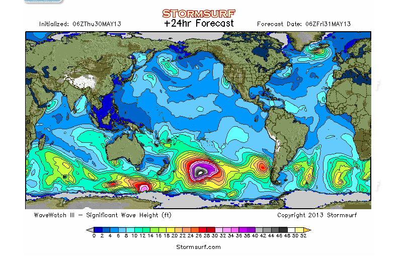 The Roaring Forties, the Furious Fifties and the Screaming Sixties. As wave-riders, these enigmatic markers play a vital role in our summertime enjoyment. Summer is a time of long days and warm, trunkable water. When massive storms rumble through the Southern Ocean, swell can reach everywhere from Tahiti to Chile to Hawaii to California to Alaska. In this article, we’ll analyze how our summertime south swells are generated and how they impact waveriders in the Pacific.