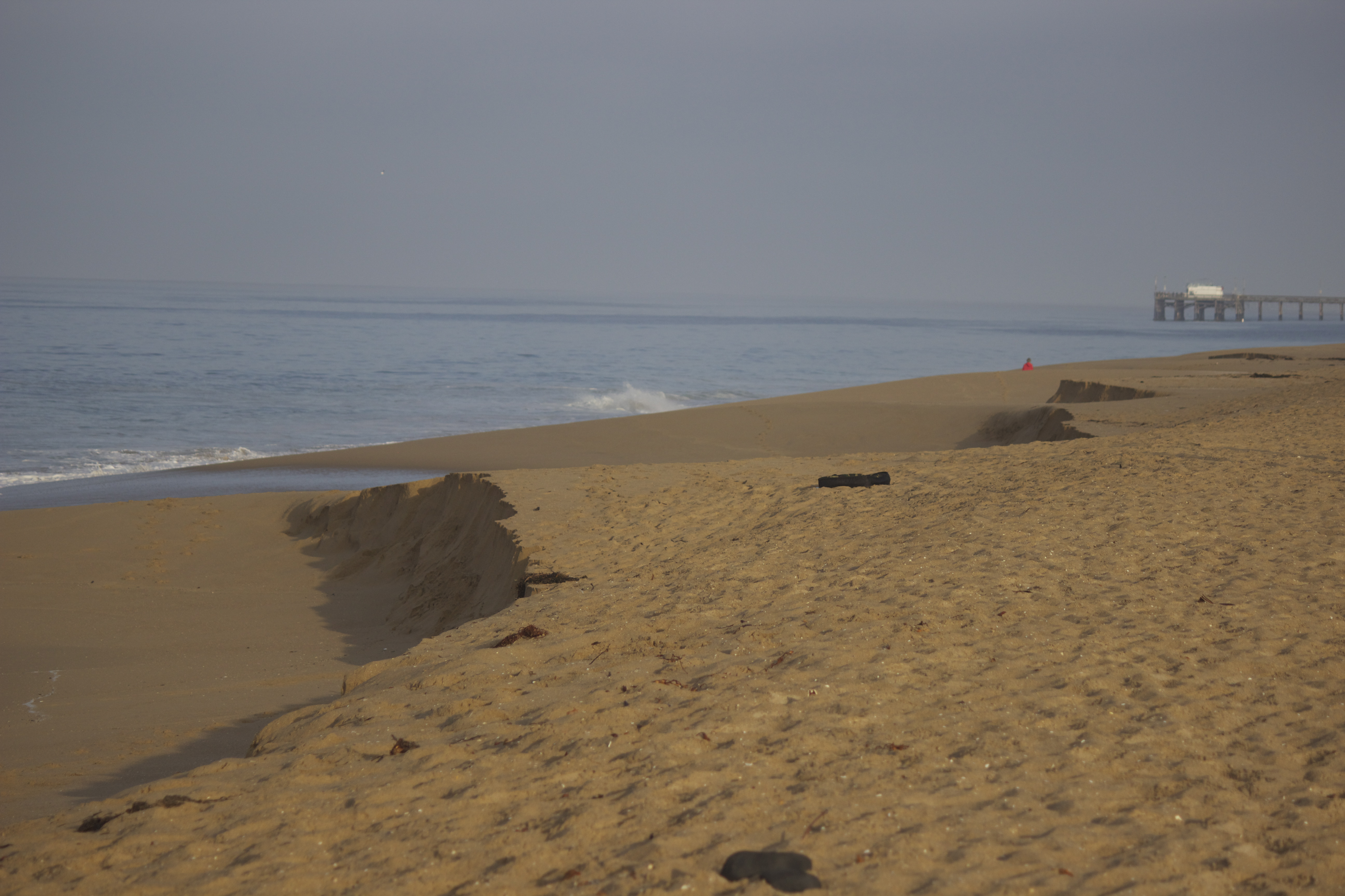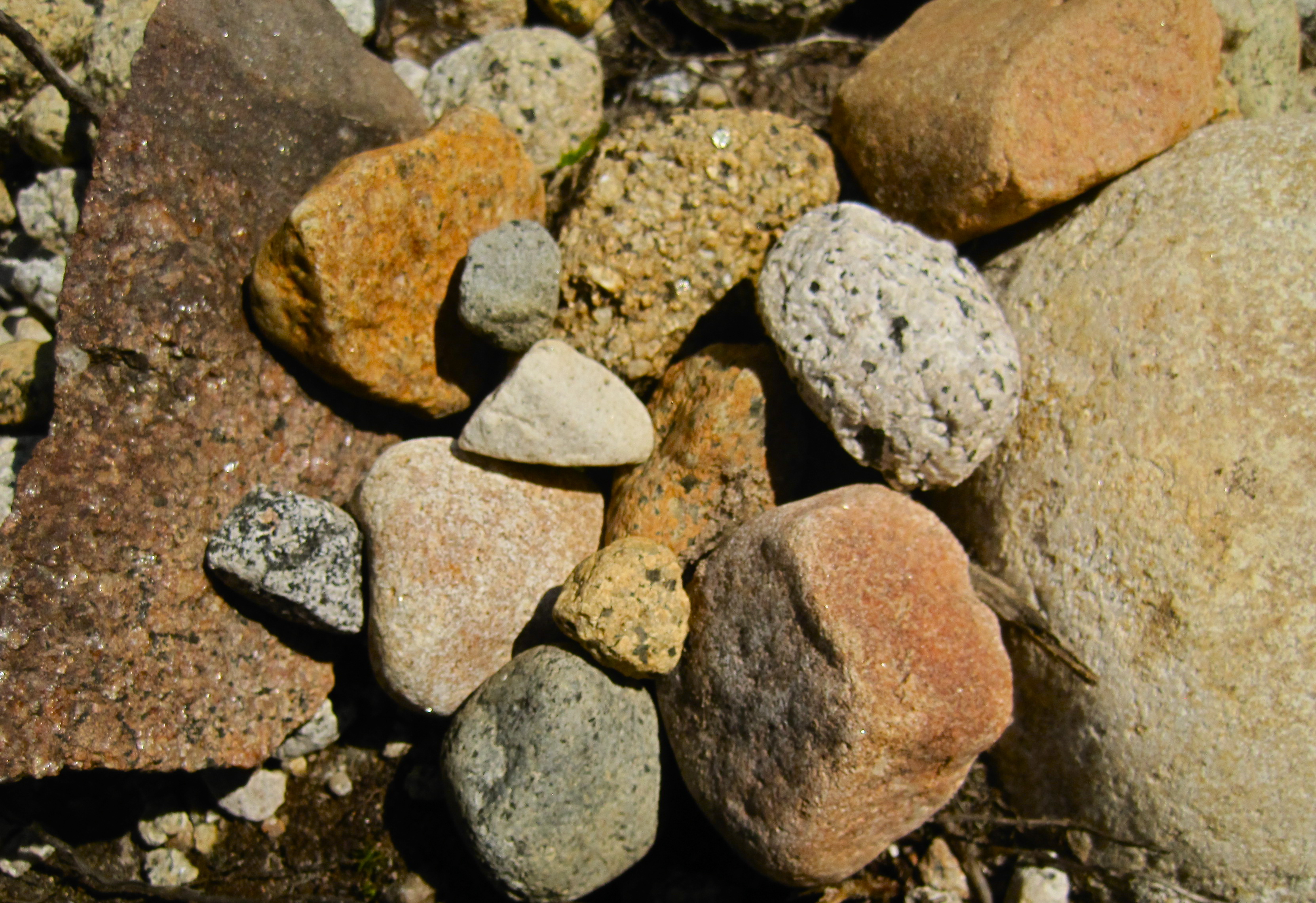Erosion moves the sediments and deposition drops them off in a new location. In California, boulders cleave off granite mountains to the east. Rivers carry chunks of the mountain downstream, continuing to break it down along the way. Rivermouths flow into the Ocean, depositing cobbles and sand on the beach. California beach sand is a mixture of these inland minerals and the erosion of the marine terrace (sea cliff). Wave action along the cliff bottom weathers large masses of the sedimentary rocks. The rocks fall to the beach and are gradually worked into sand. California beach sand also contains a living ecosystem and various other detritus.