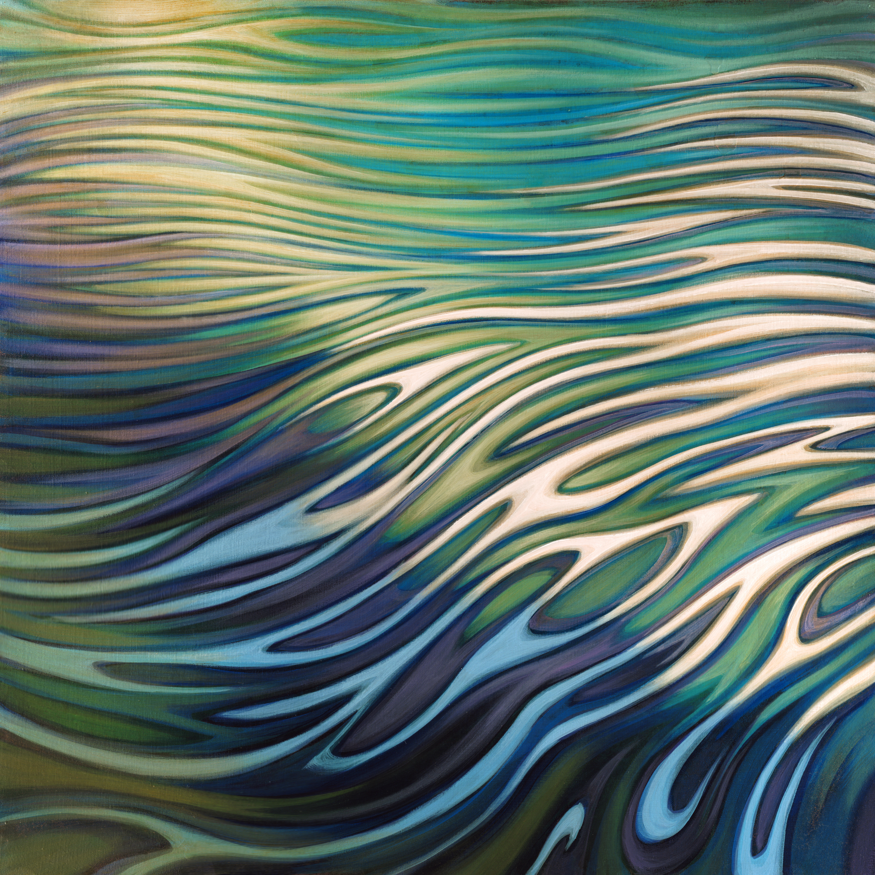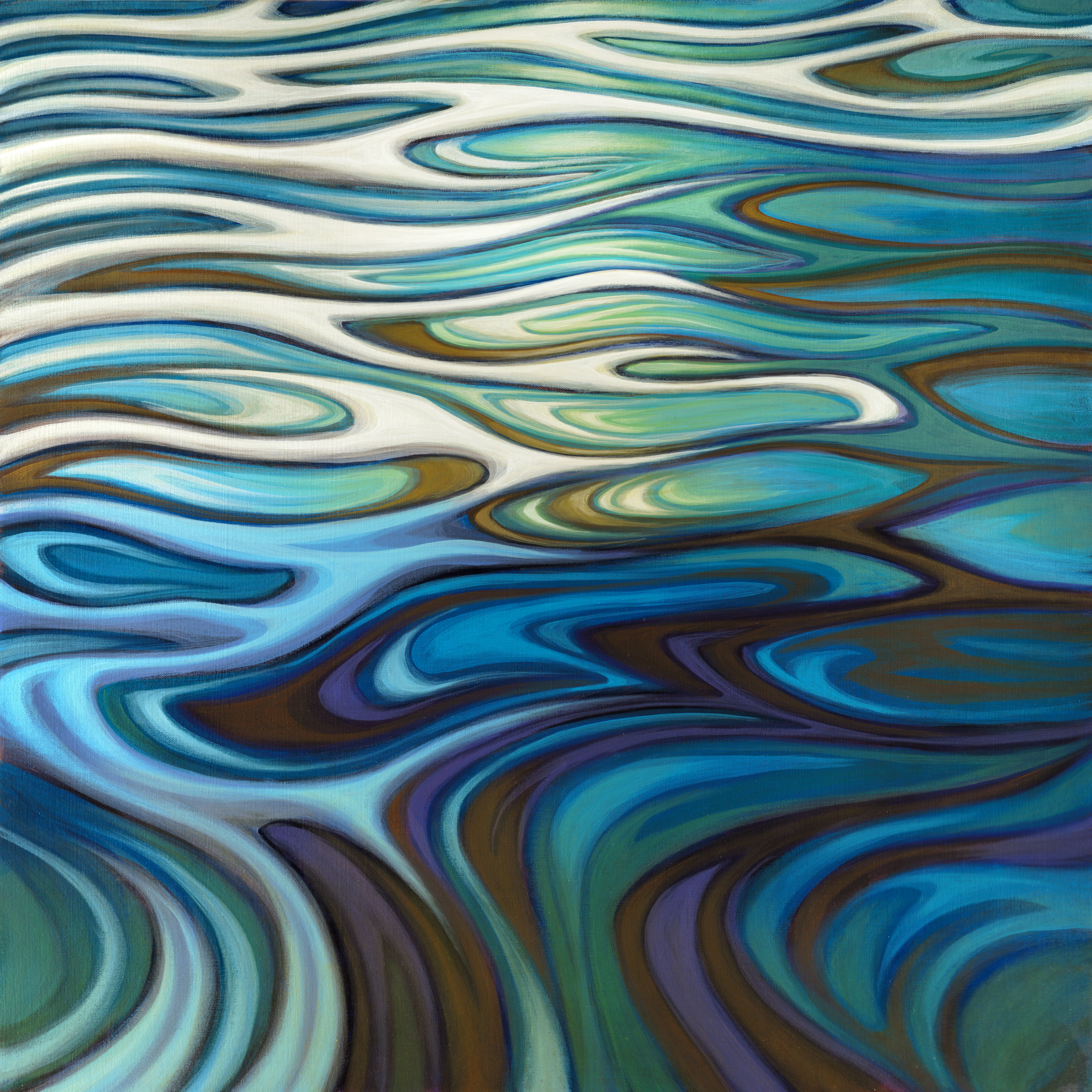 Waves. I love ’em. That’s what each painting in this series is all about. But instead of just painting a bunch of waves, I thought it would be interesting to try to convey a sense of a wave’s presence without actually showing the wave itself. The shadow from the wave falling on the surface foam left behind by the previous wave. The water drawing off the shallows. Subtle clues, but hopefully when they register with an ocean minded person, the blanks are filled in and the wave is suddenly imagined and felt instead of seen directly.