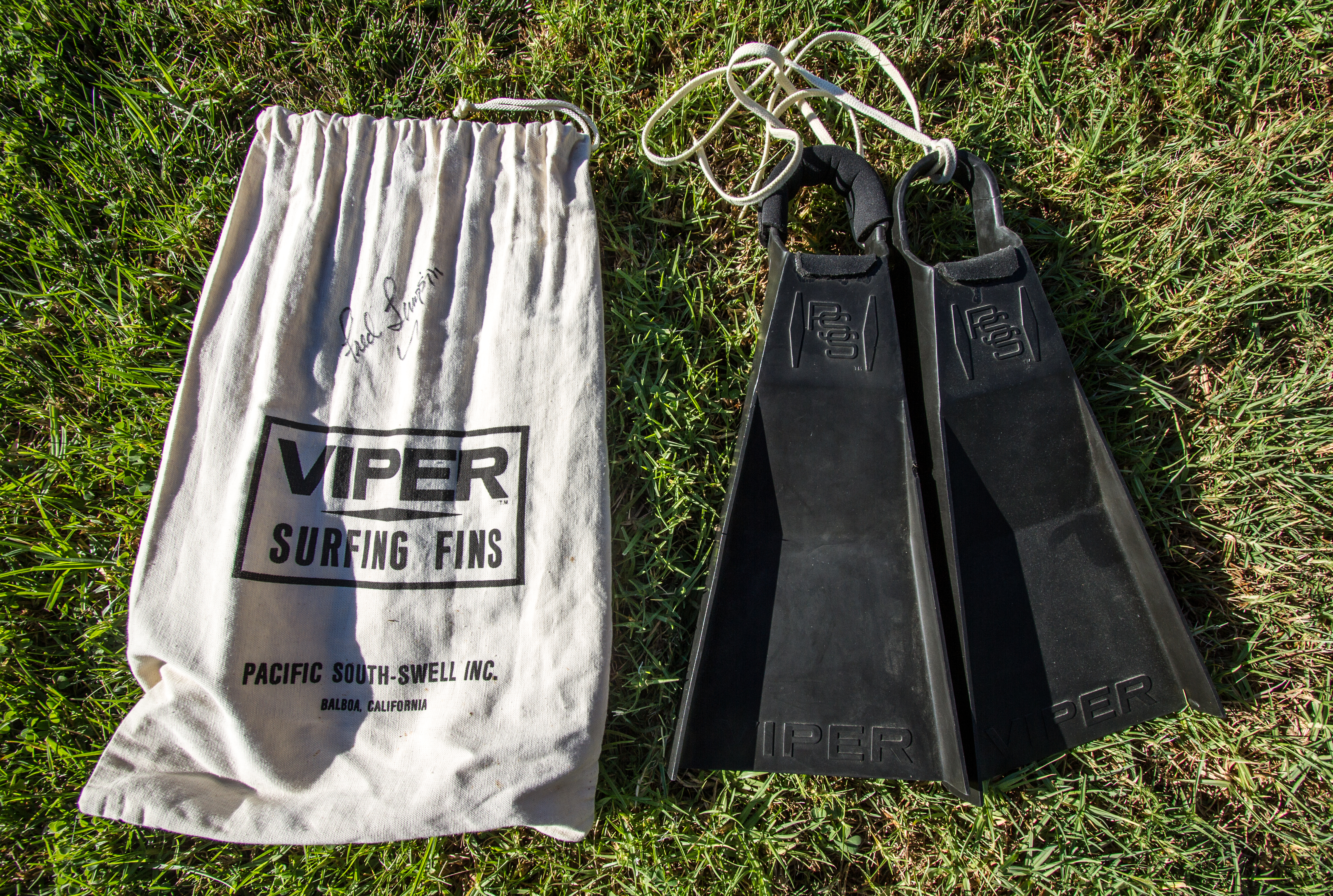 Viper I-Beams. If there’s a fire I’m running straight for these over anything else! My best friend, mentor, man about Wedge, John Potato Head a.k.a. Kunu Karam gave me these fins! These were his daily drivers back in his glory days. Whenever I pick these up, I imagine Potato just laying it down on some magical corner bowl in 88! What’s even wilder is Karam had the original canvas bag he got with the fins. For added flare I had the legend himself, Fred Simpson, sign the bag. An amazing fin with an amazing past.