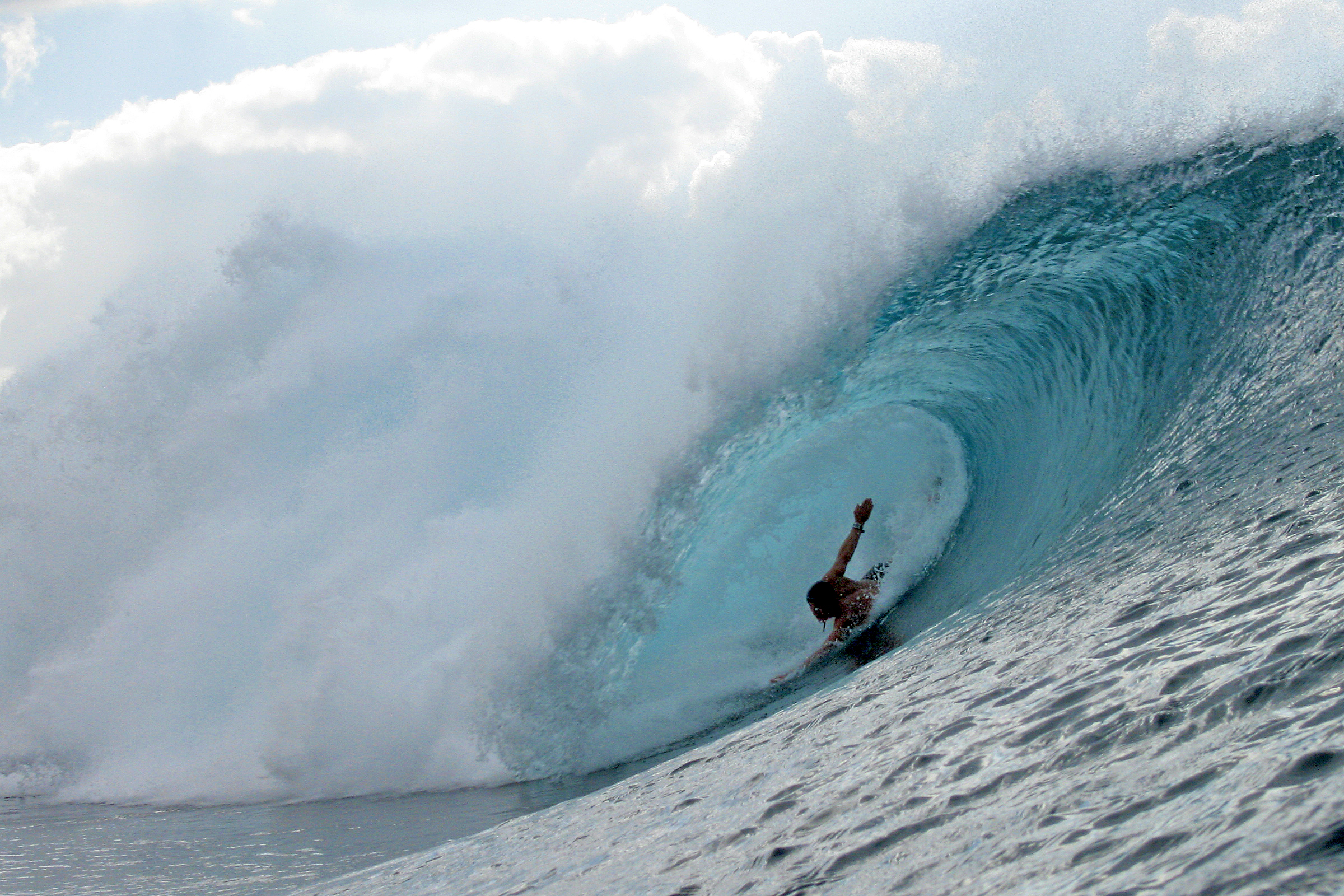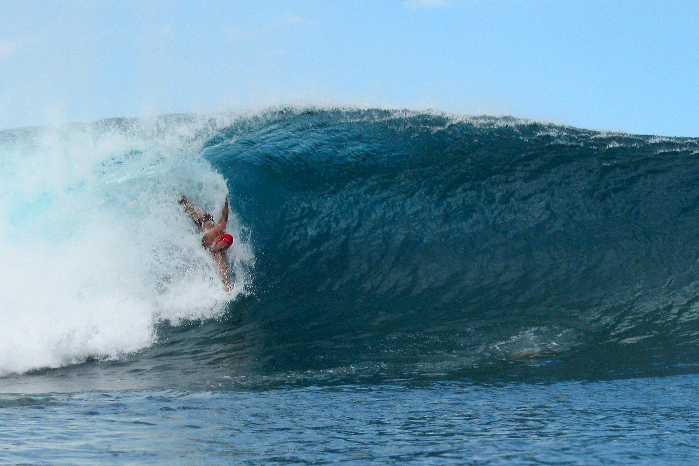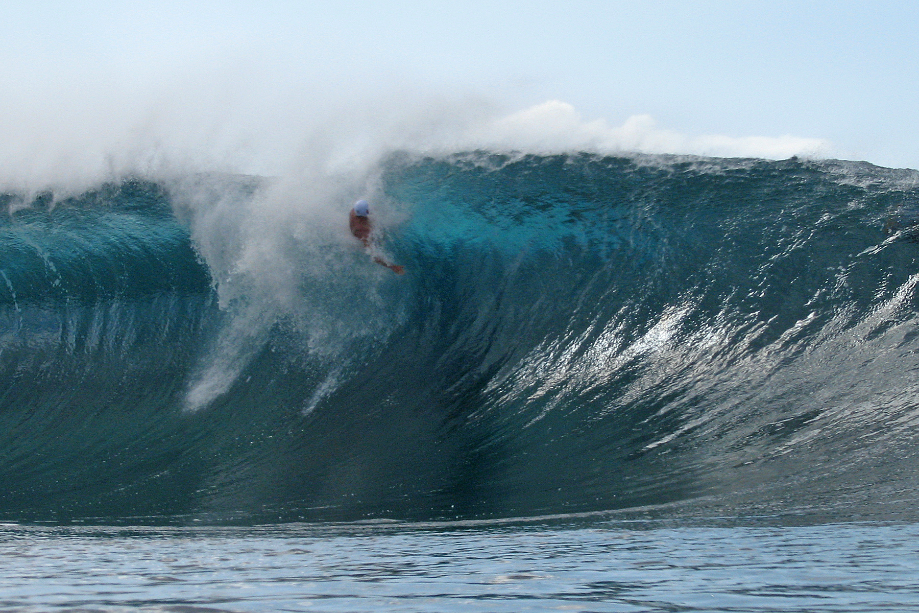 At many contests on the North Shore, the Hawaiian Water Patrol crew regularly provides water safety and security with jetski and life-saving support. But during breaks in the action, they sometimes launch into a few (poho bumbay (otherwise waste)). Here’s Mark Cunningham on a sweet insider during the 2009 Pipe Masters.
