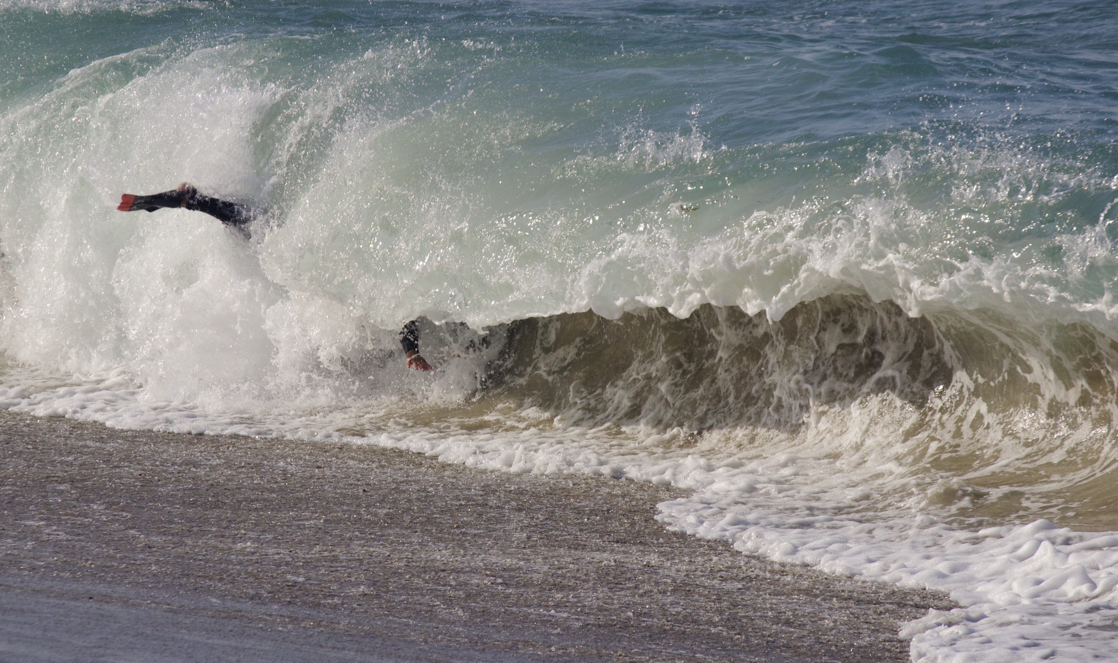 In bodysurfing, even the best rides sometimes end in violent underwater poundings. After locking into the pocket of a hollow wave, you watch the next few sections stand up and majestically start to bend. You enjoy the vision and take a deep breath of barrel air…sucked up the face and thrown over the falls. The Ride After the Ride. Spinning, tumbling… limbs ripped in all directions. Underwater waterfalls, like getting sucked into a hole. Smashed to the bottom and held there. Sucked up and slammed back down. But for most of us, that is at least part of our attraction to waves and the Ocean.