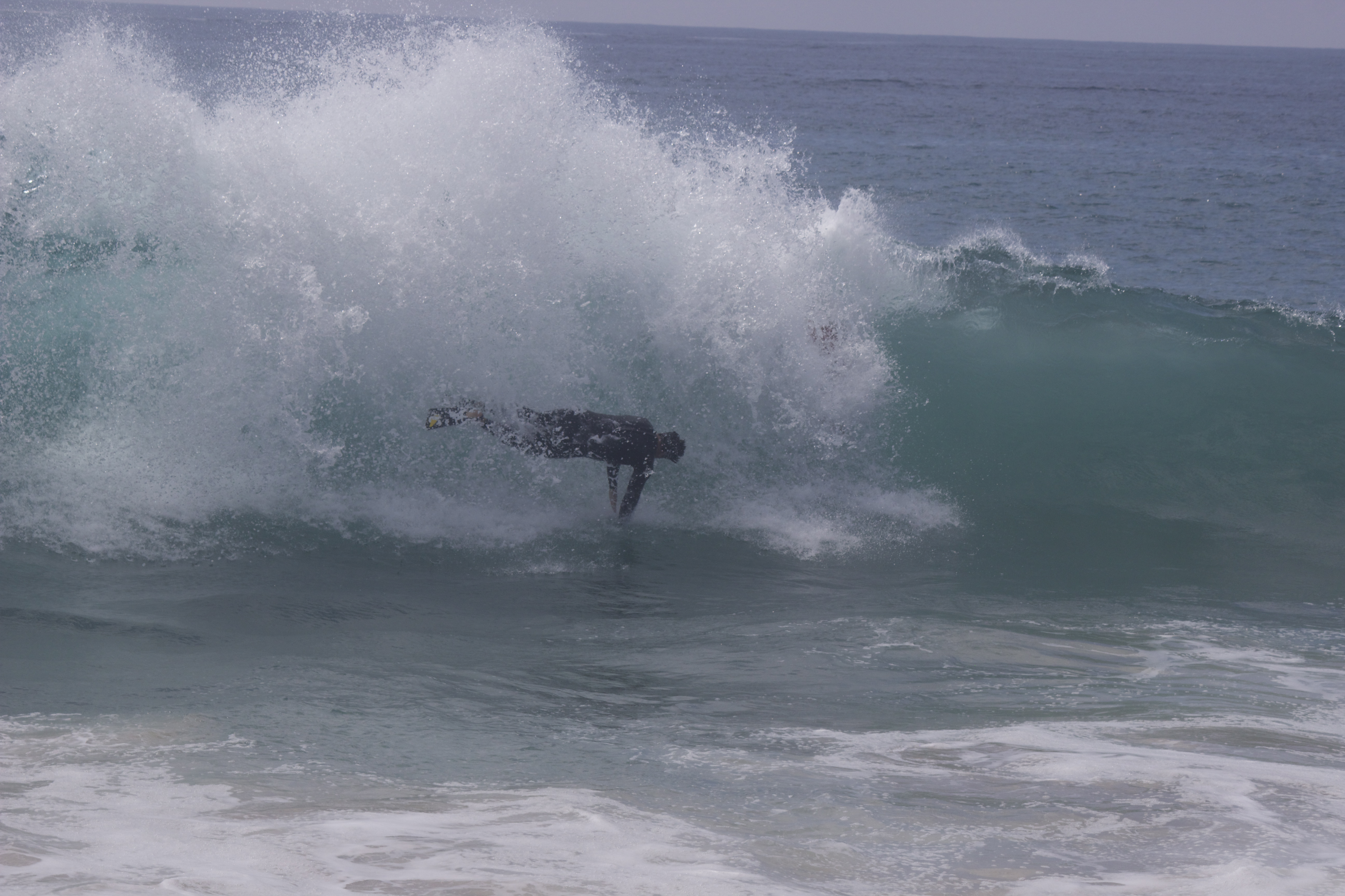 The first good beating, after a long flat spell, is always interesting. Hints of panic come sooner than they should. But after a few solid waves, lungs expand and confidence increases. By the end of a solid swell, you’ll throw yourself upside down backwards into the heaviest part of the wave, just to learn about the vortices underneath. As bodysurfers, it is nice to take our Ocean cracks without worrying about that very sharp foam/fiberglass/plastic thing tethered to our leg.
