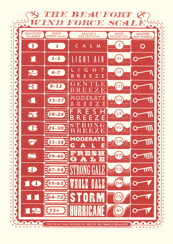 As stated before: the stronger the wind, the bigger the area (fetch) and the longer they blow- the bigger the swell. Wind speed is measured by the Beaufort Scale: from calm- breeze (4-30mph)- gale (31-63mph)- storm (64-72mph)- hurricane (72mph+). With extreme low pressure at their core, hurricanes and tornadoes contain the strongest winds on Earth, sometimes measured between 200-300mph! The planet Neptune has the strongest known winds in the solar system at 1,300mph+. Imagine the swell that would generate!