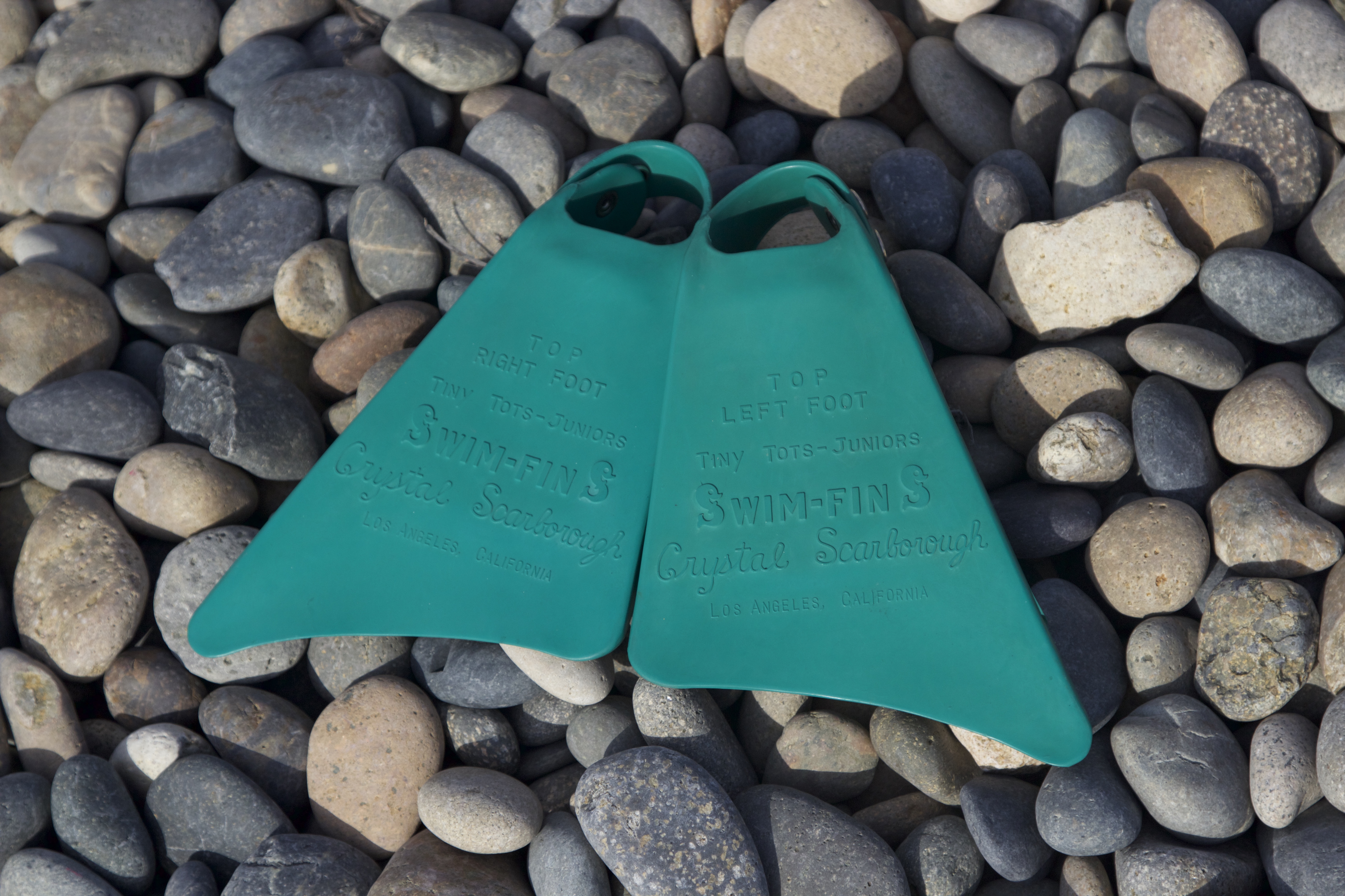 -She was a Beverly Hills celebrity swim instructor for 30 years. Scarborough developed a method of instruction for children involving arm floaties and swim fins. These kid’s fins appear to be vintage and closely modeled after early Churchills.