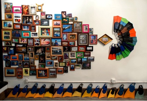 I also use fins in my art. My friends kick over found singles, orphan, outgrown and broken fins. I now have hundreds. The neighborhood groms know they can come by if they lose a fin or grow out of their pair. Someone gave me a nice pair of red Redleys. They are lighter with a better fit without a fin sock so I am looking forward to trying those.