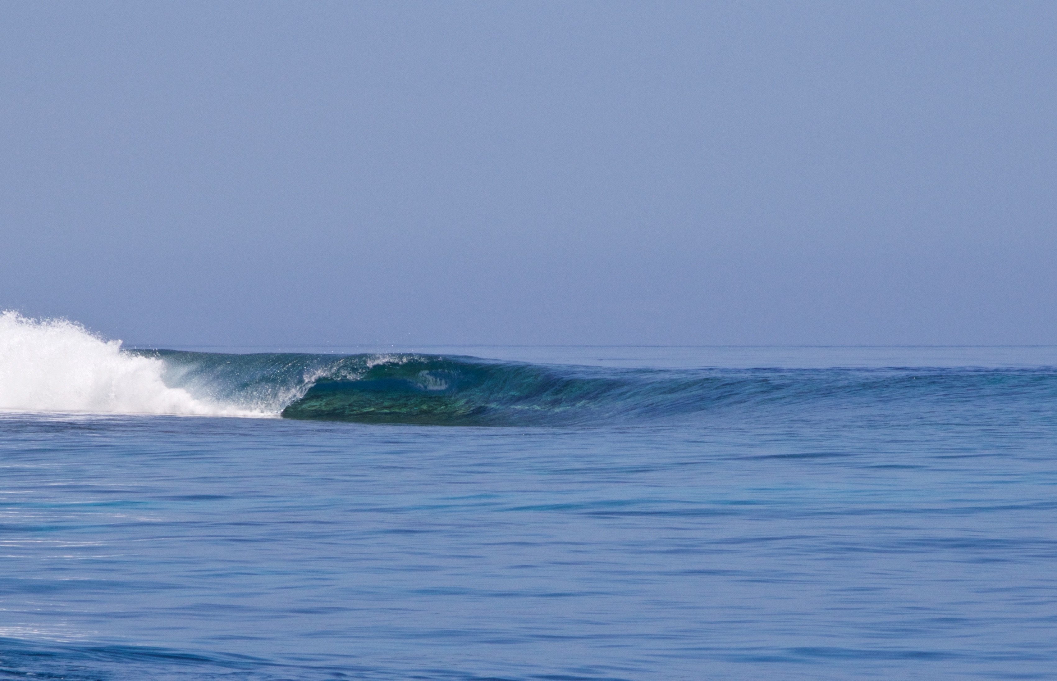Sitting on the boat after SCUBA diving, drinking some juice, I could see miniature lines of swell bending around the reef. Then I watched a darker lump approach. A long line stood up and the trough began to drop underneath. The Ocean surface was perfectly glassy. The wave began to break up the reef and perfectly wrapped all the way around. It was only about waist high but it was spellbinding in its perfection. I luckily had my camera and snapped a long sequence. The stunning reef peeked up just inches below the surface. Mind surf. It was one of the most beautiful waves I’ve ever watched.