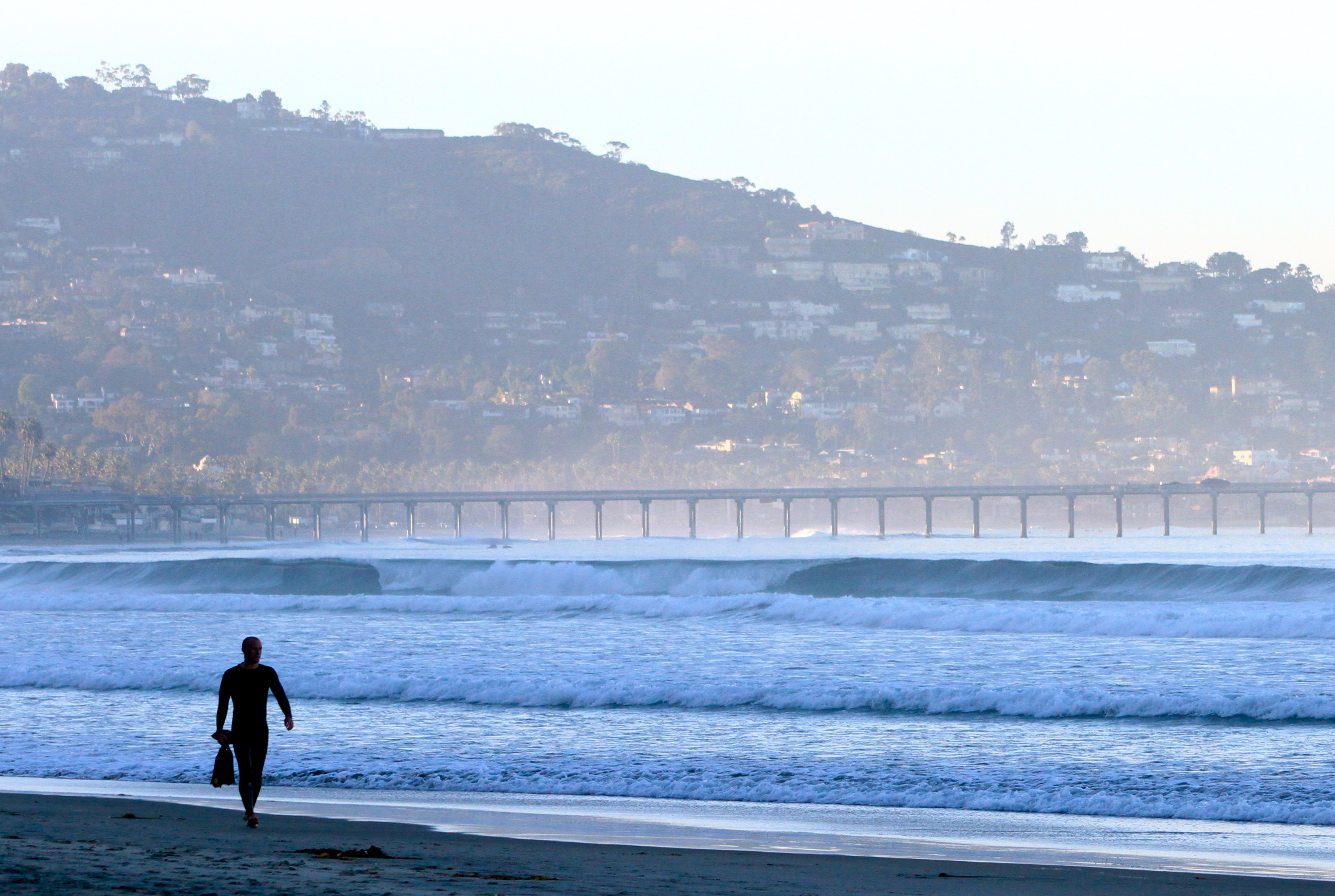 Dawn patrol. 37 degrees at 5:30am. Wind chill a few degrees colder. Coffee. Numerous layers of clothing. Out the door with towel, fins and…damn it! Forgot to rinse and dry the wetsuit after last evening’s session.