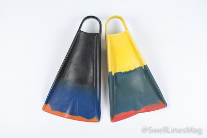 Scott Hawaii fins are beautiful. They come in several color patterns, the most common being yellow-blue with red tips. Scott Hawaii fins are no longer in production, but they are a favorite of many bodysurfers. I enjoy the fit of the fins. They feel quite heavy out of water, but for being so short and rounded, they provide excellent drive.