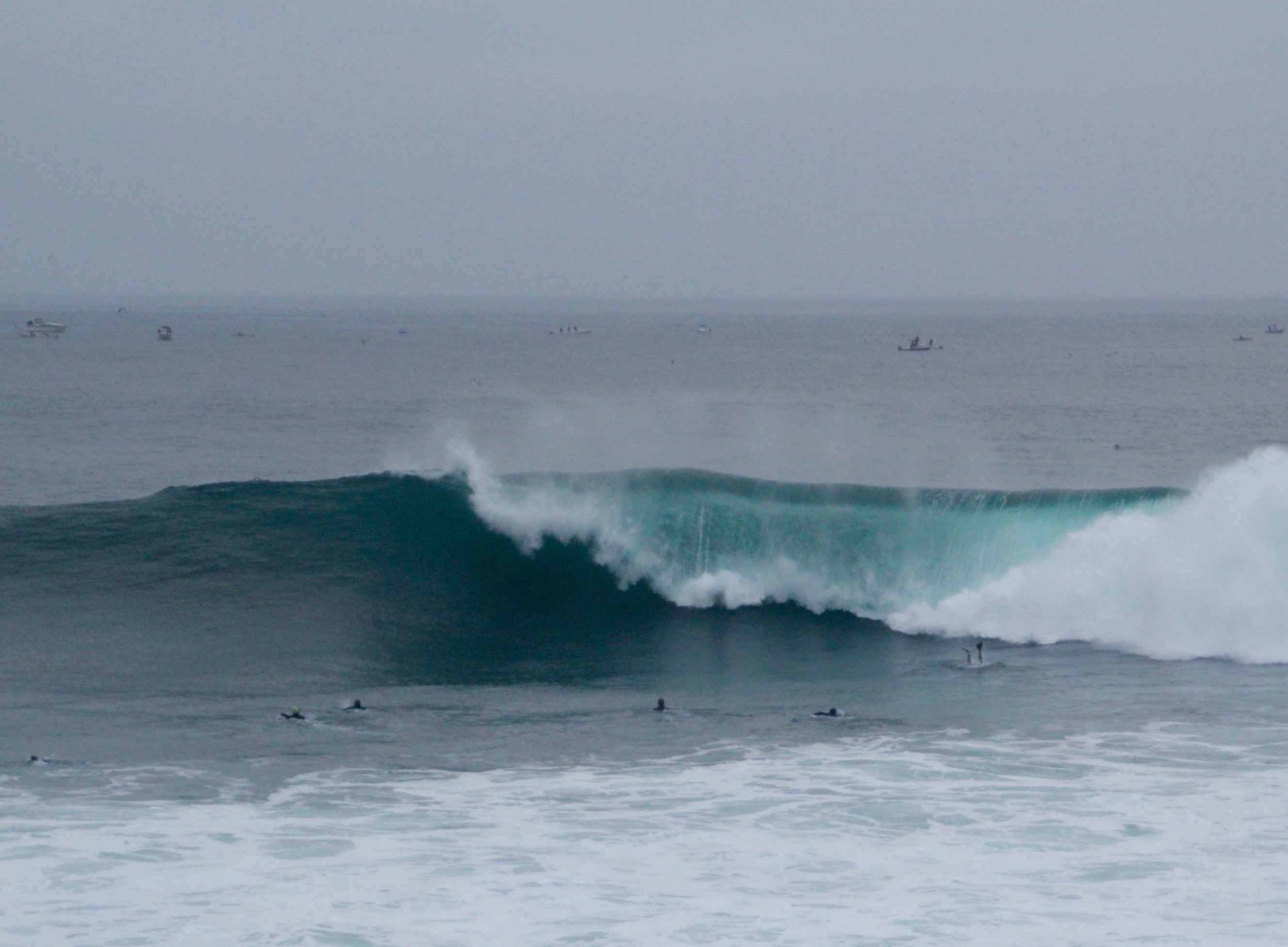 Rocks that have been here for eons. Sometimes the rocks are friendly. Most times they are not. Occasionally they shift and clamor with excitement, when the waves get too big. Today the rocks just wait, immersed in the constant energy of the surf. Energy that has travelled long and far to deliver its fatal blow on this ragged coastline. All of the members of the morning cast feel it. The sea lion is lifted from its hiding place in the kelp, the gulls evacuate their roost on the once-calm surface, the man dives deep into the blue. While submerged, he pauses to look back through the vertical pane of water as it stands up on the reef. He sees the distorted form of the apartment building, complemented by a row of crooked parking spaces, a furry swath of green grass, and a twisted, gray railing.