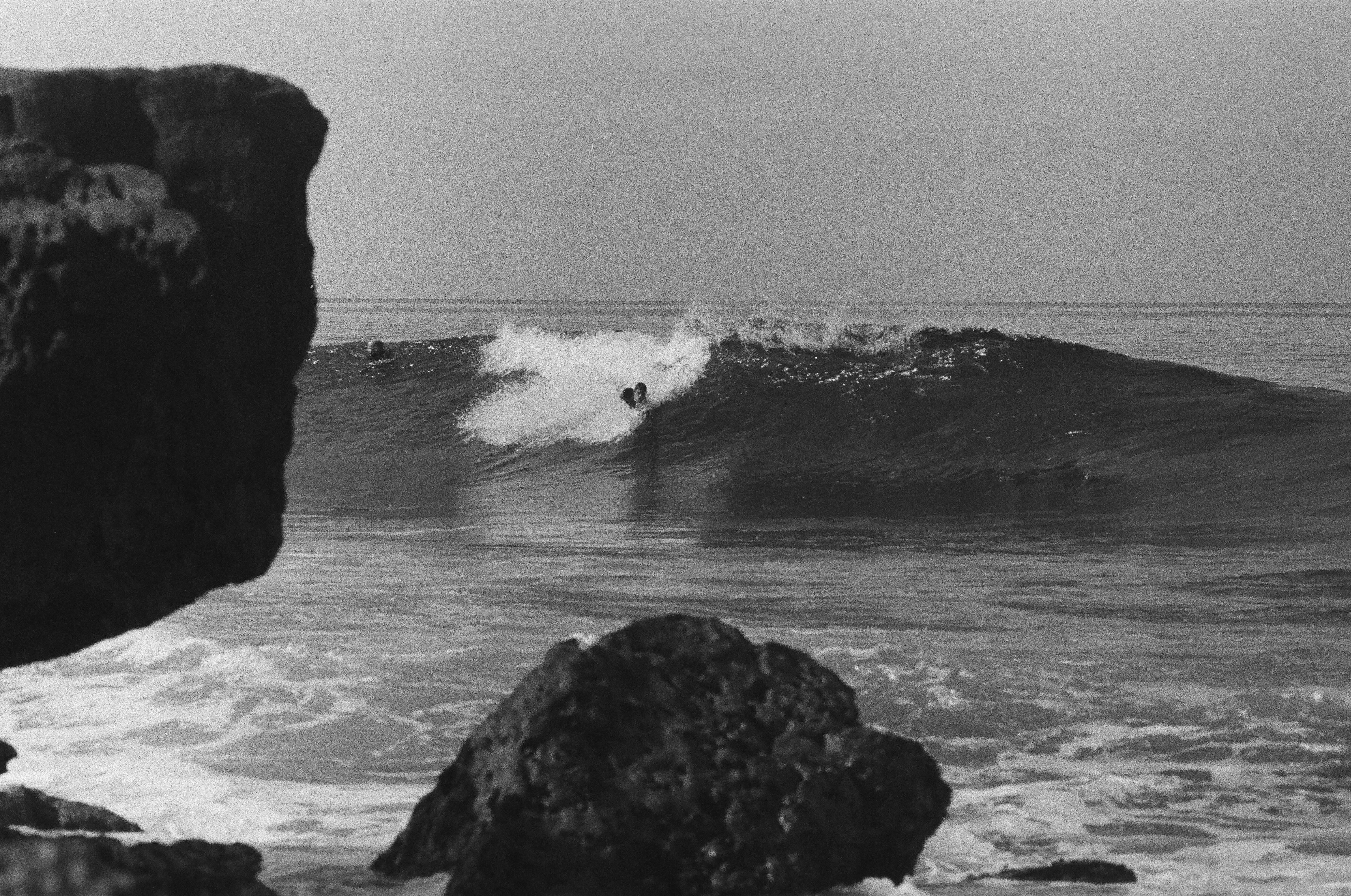 From Tom Blake to Doc Ball to Ron Church, it is incredible that all surf photography before about the year 2000 was taken 36 images at a time on a film camera. It is said that a photographer does not begin taking quality photos until he actuates a camera 10,000 times. Well then, we might not ever take good analog bodysurf shots, but we certainly enjoy the process anyway.