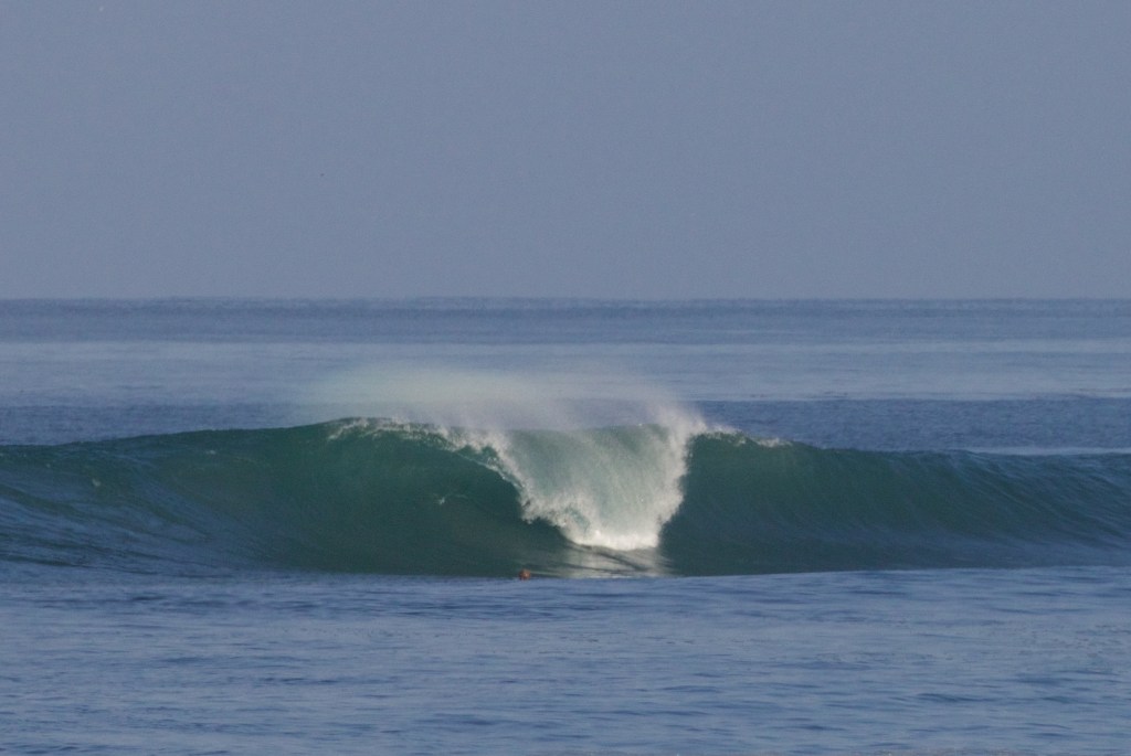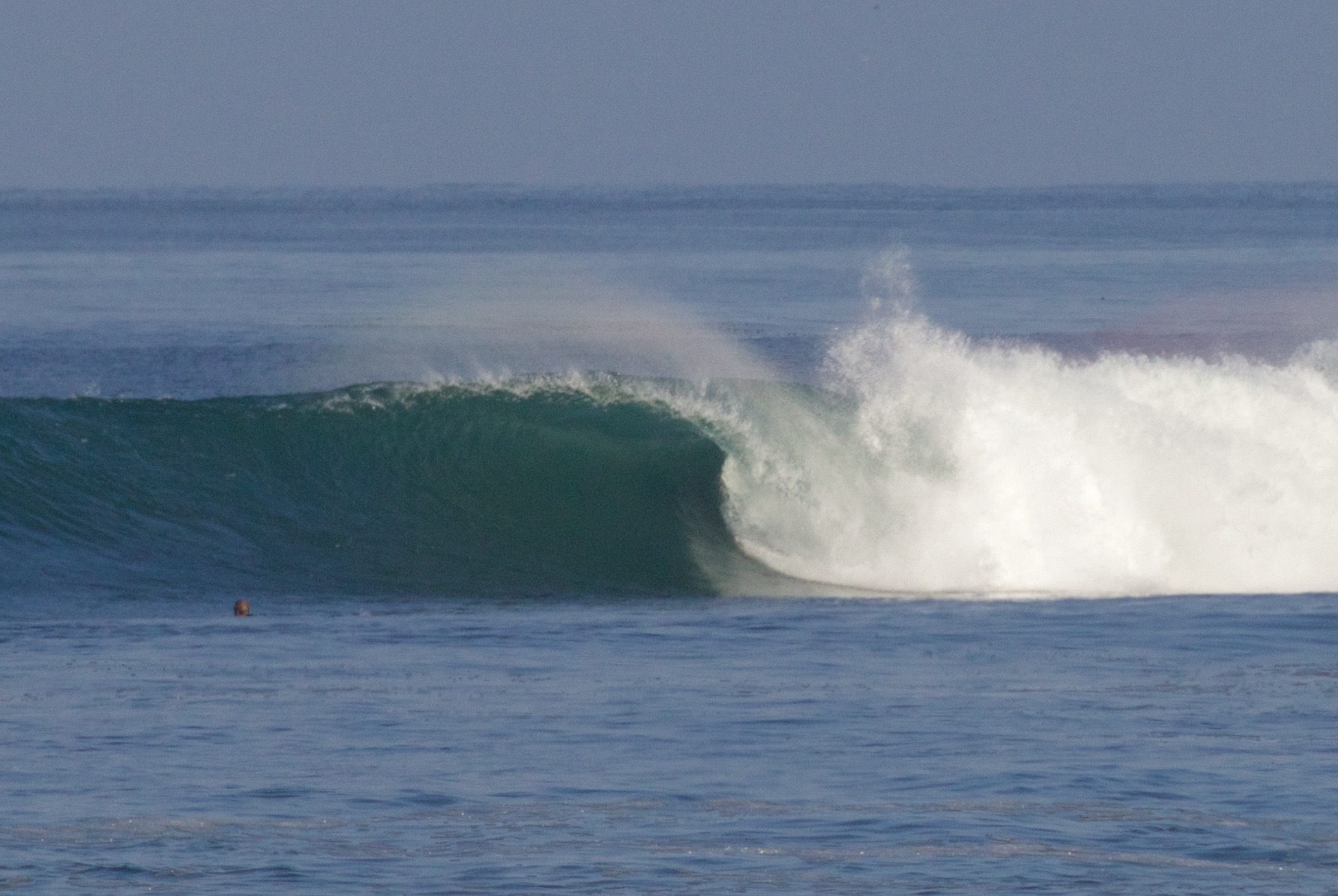 On two more, I was able to pull in; I thought I was going to make it out of the first, but it pinched shut on my head and I got rolled for a bit. The second was bigger, with a jacking, steep entry. The MiniMother held its edge, as it always does. This one had the crazy drop but less time in the tube as it closed out…my wave selection there had been a bit lacking. My next was another steep drop to a long ride almost all the way in, but no barrel.