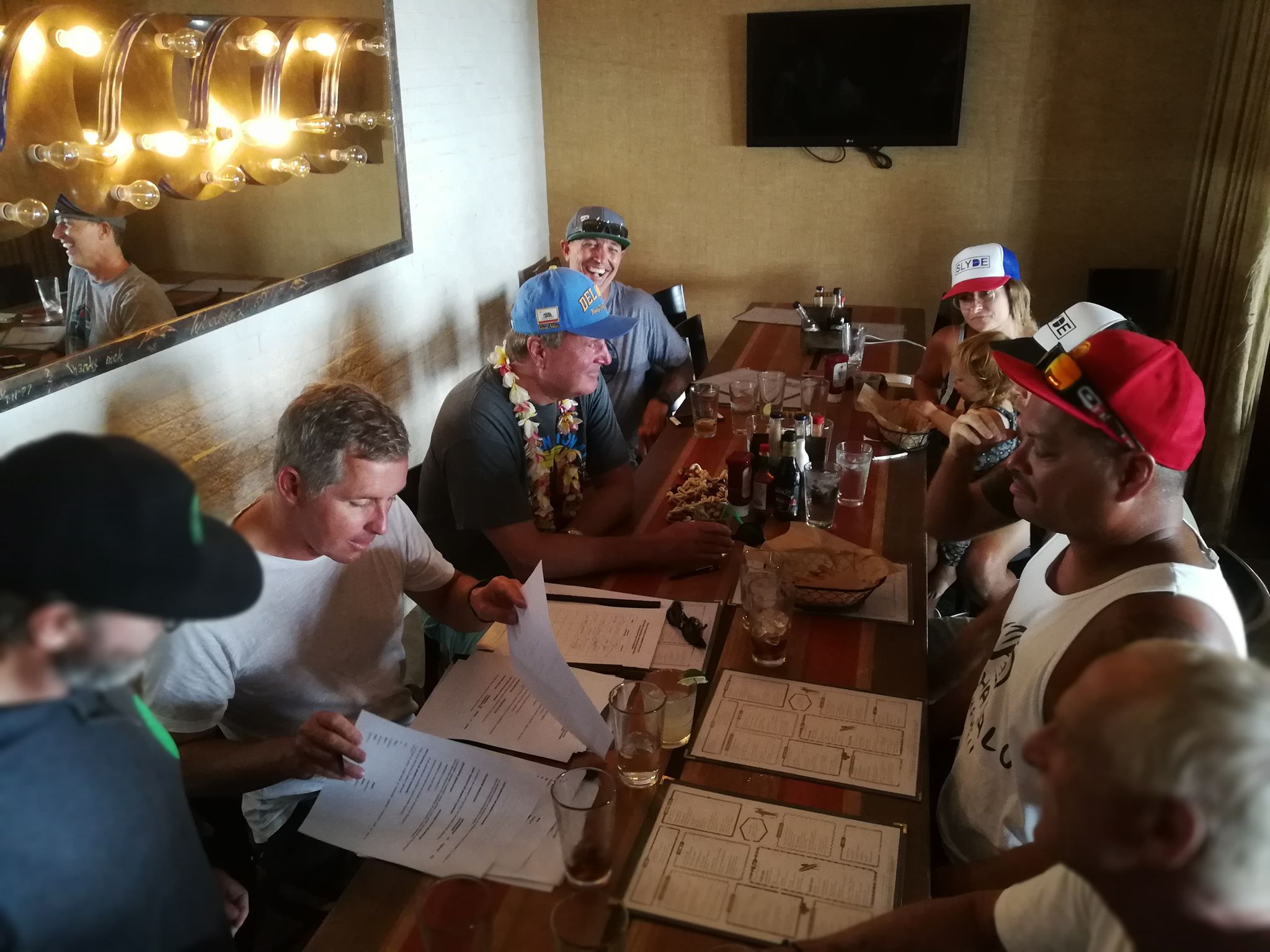 The six representatives were Patrice himself representing France and also the European Bodysurfing Association, Vince Askey and Steve Watts representing USA, Sean Enoka representing the Hawaiian Islands, Sakina Bargach representing Morocco (by previous correspondence) and Don McCredie representing Australia.